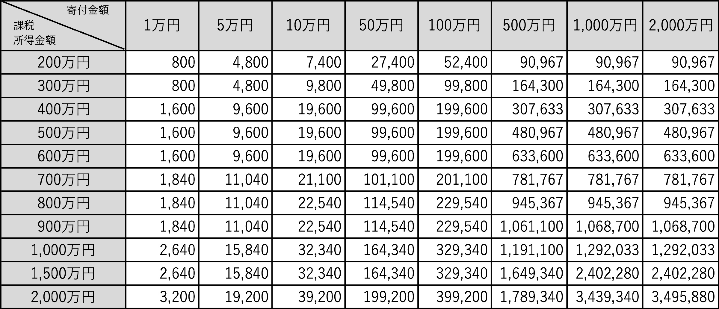 寄附金額 – 2千円 = 所得控除額