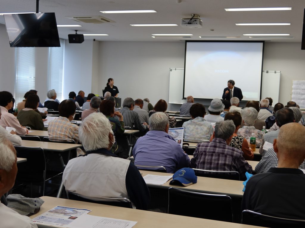 2025年5月16日(木)大塩老人クラブ「歩こう会」の会員約110名の皆様に姫路大学を訪問していただきました。看護学部 菅野夏子先生が「ウォーキングとロコモディブシンドローム予防に向けて」というテーマで講演を行いました。