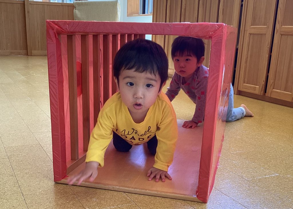 1歳児 木製トンネルがこいのぼりに変身!こいのぼりトンネルをくぐって遊びました。