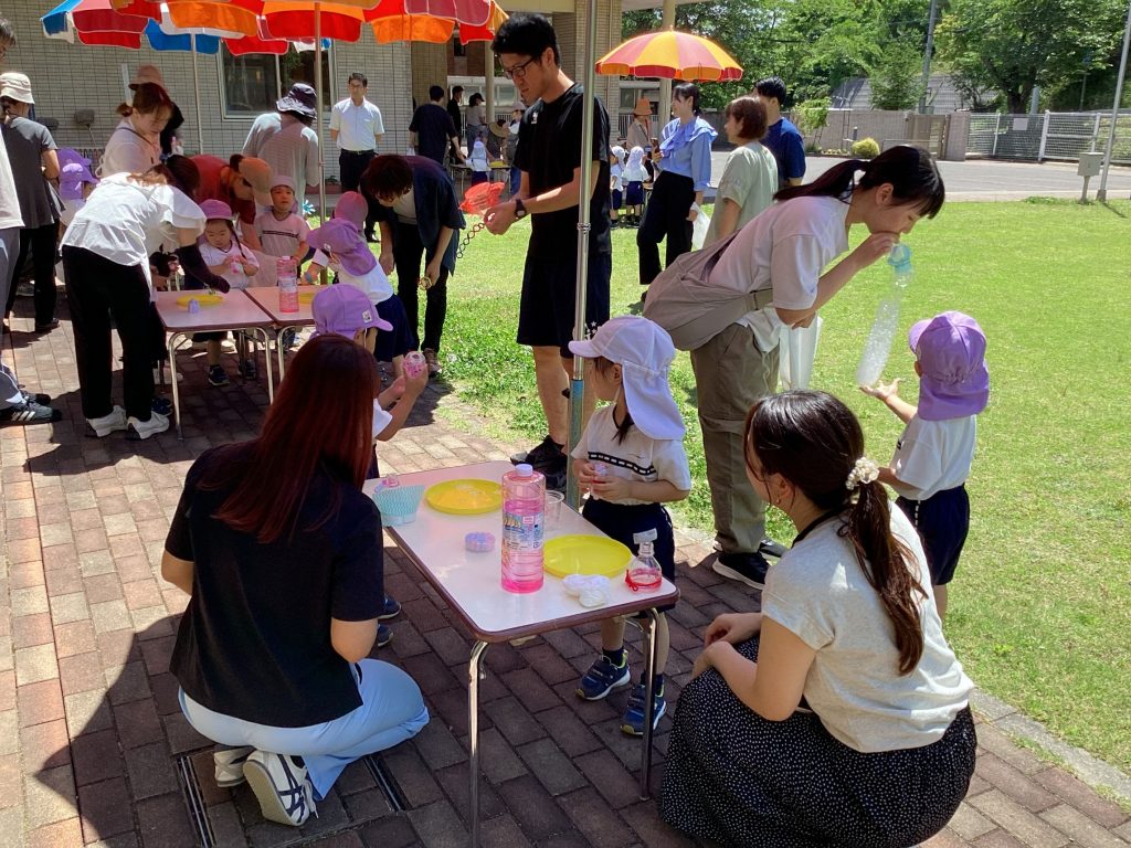 作った吹き具でシャボン玉。どんなシャボン玉ができるかな?