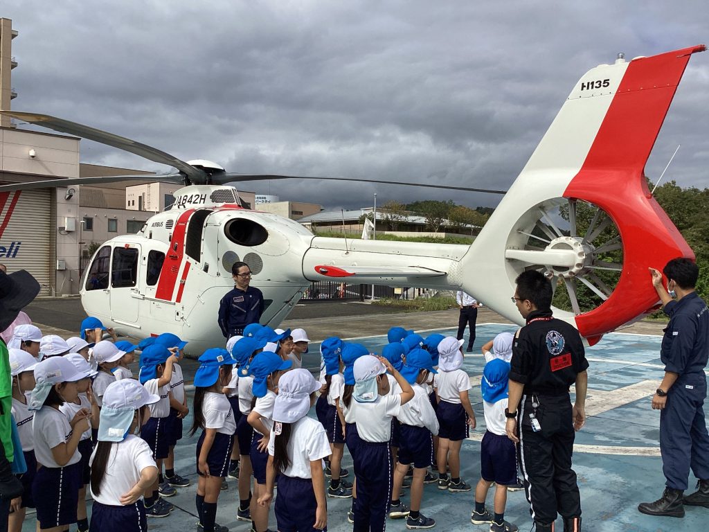 10月15日、5歳児が徒歩遠足で豊岡病院 ドクターヘリの見学に出掛けました。