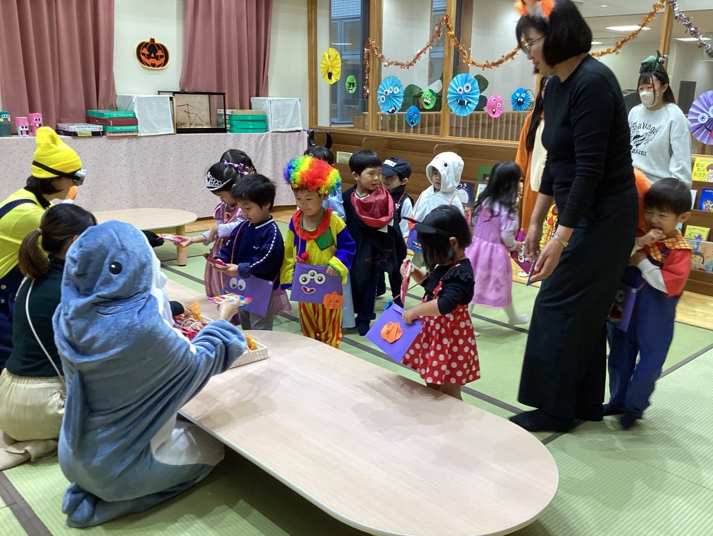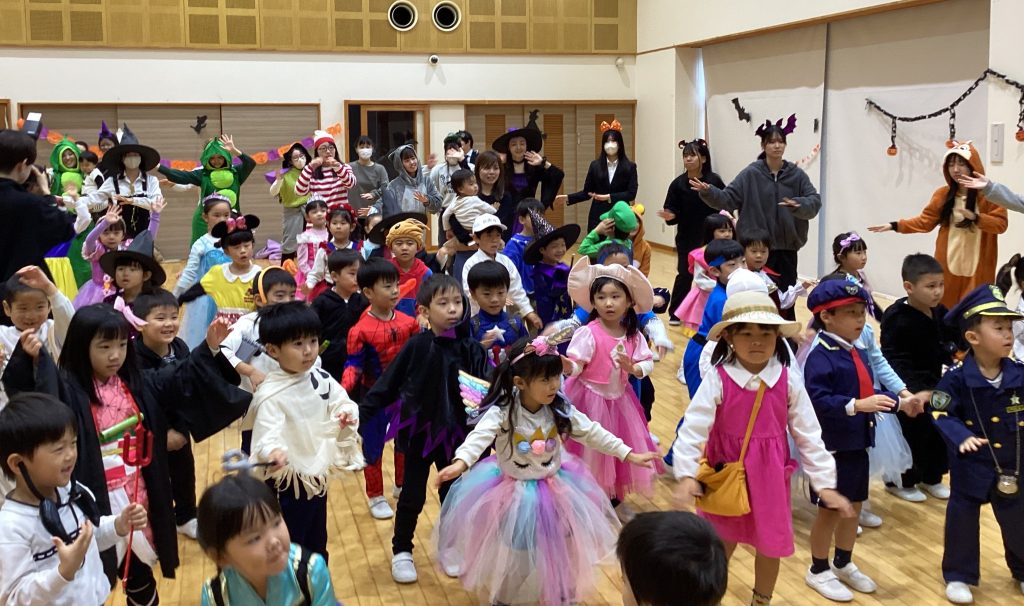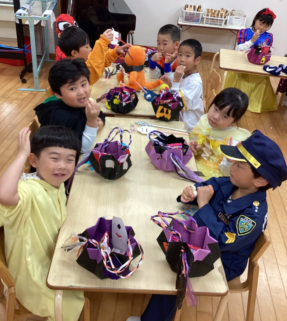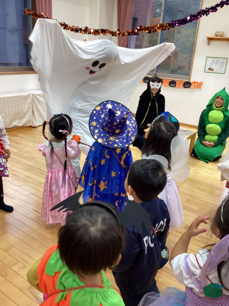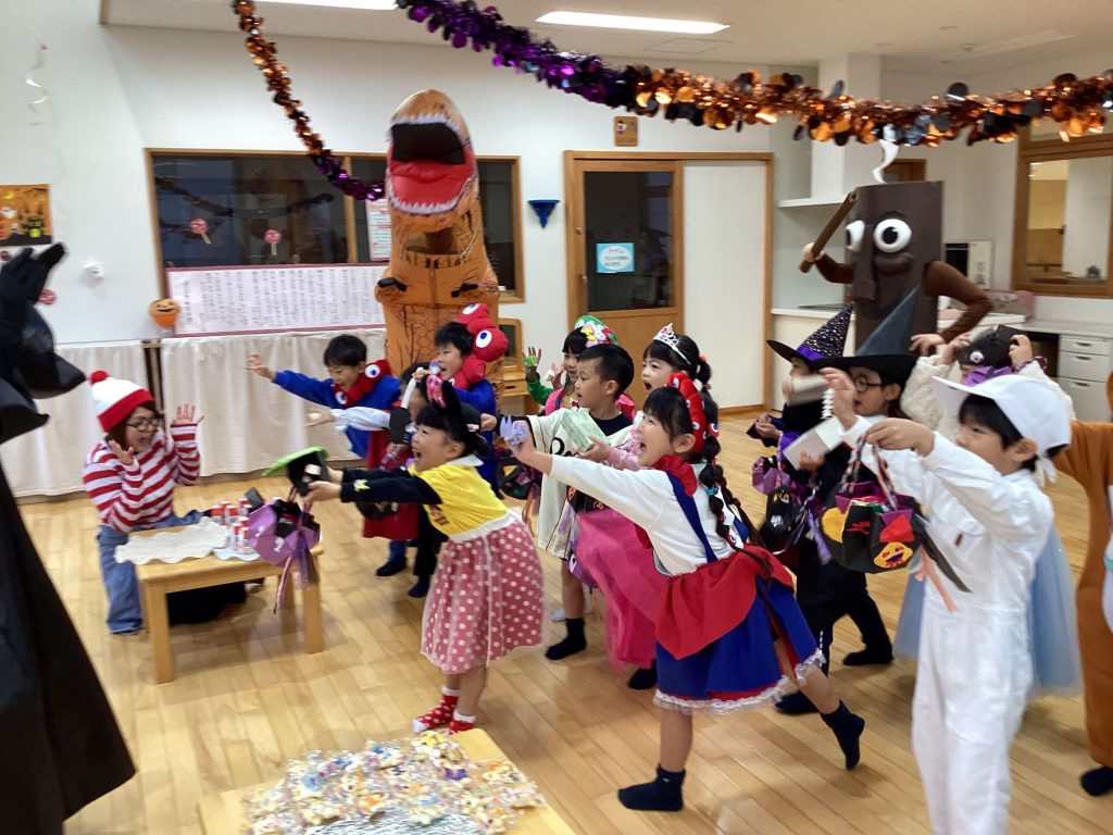 10月31日、ハロウィンパーティーを行いました。この日は3~5歳児は仮装をして登園。魔女、忍者、警察官、プリンセス・・・、思い思いの衣装を身につけ、1日中ハロウィンを楽しみました。