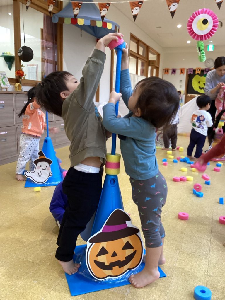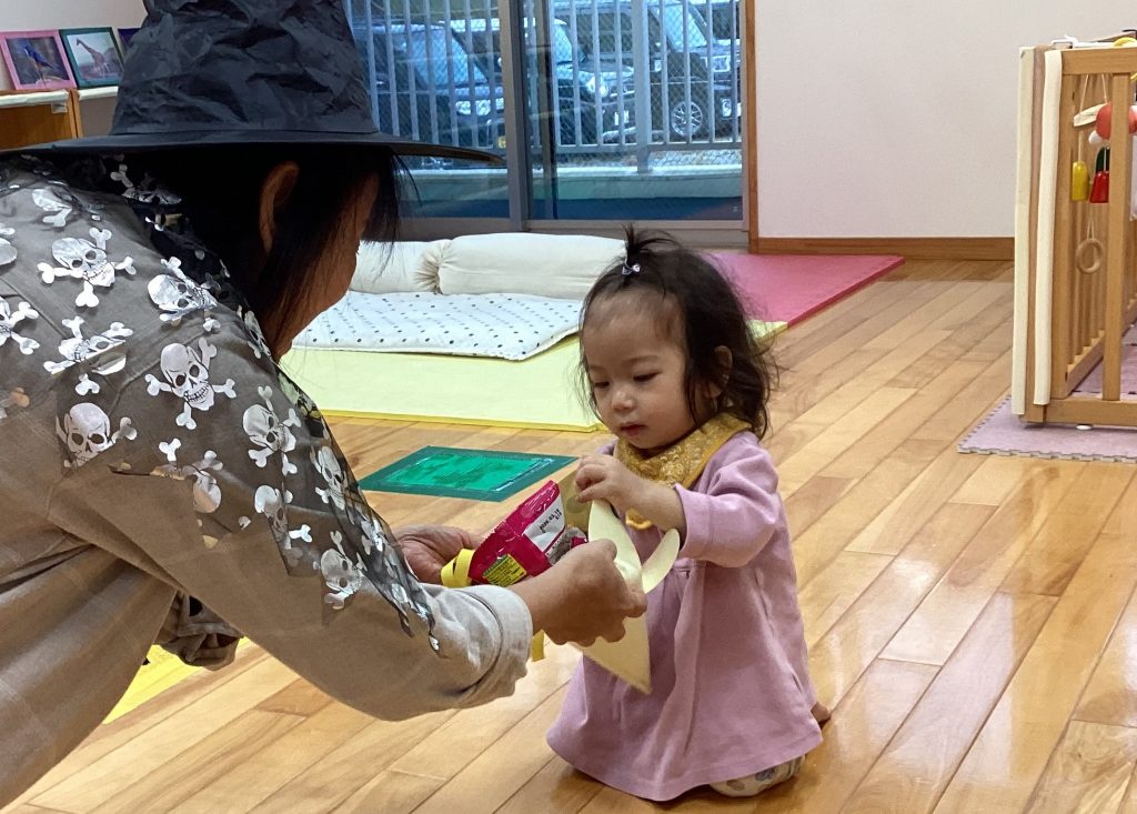 10月31日、0~2歳児はプレイスペースでハロウィンパーティーを行いました。