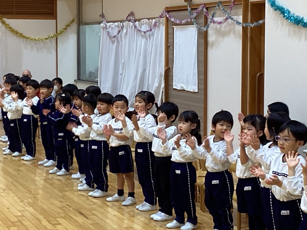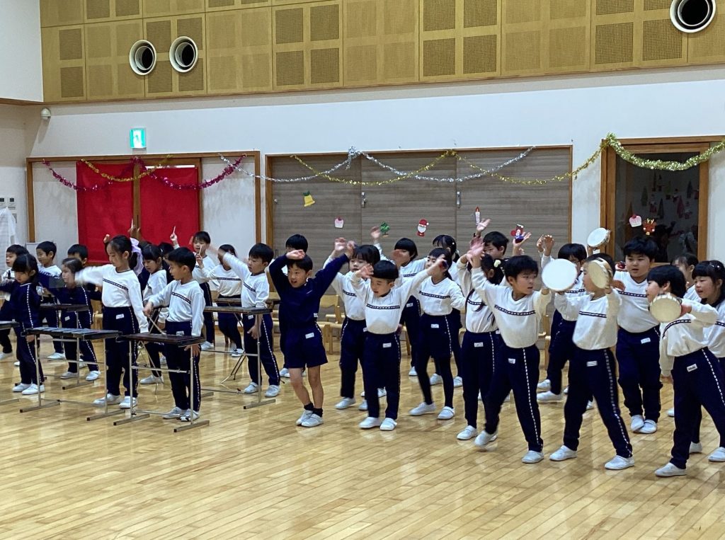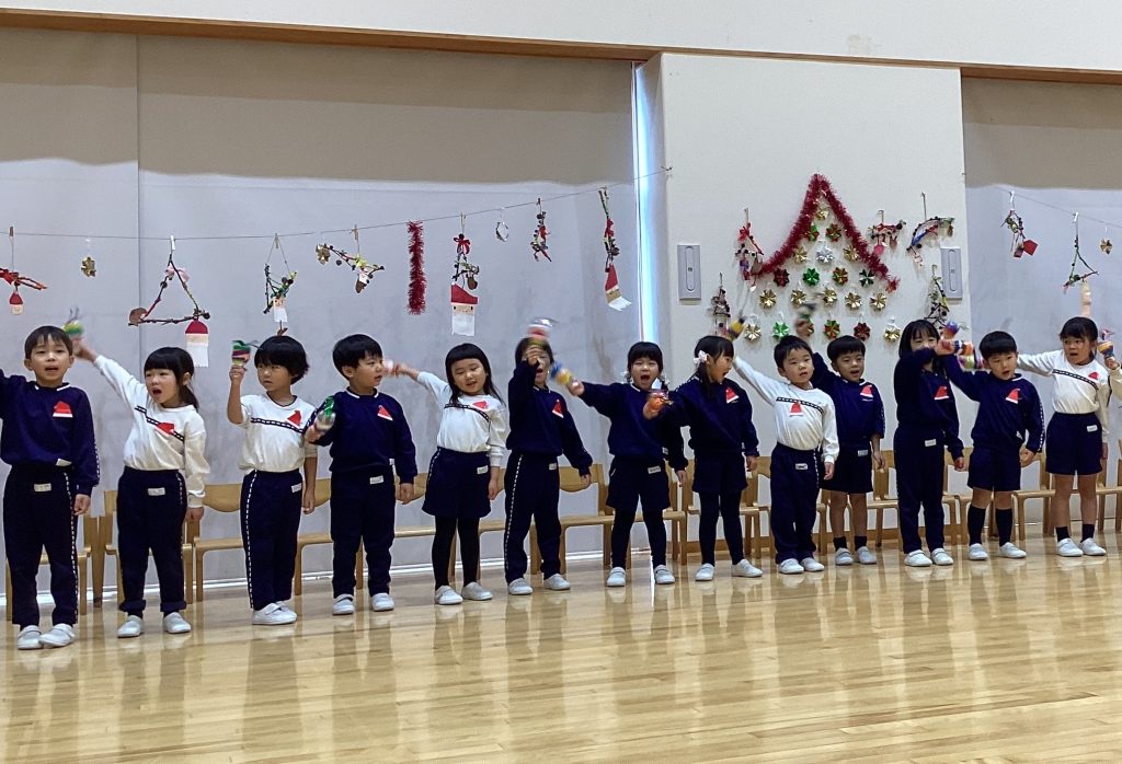 5歳児はStork Kindergarten Theaterで披露した「ジグザグおさんぽ」を合奏し、歌の最後の歌詞を「メリークリスマス!」に変えて盛り上げました。