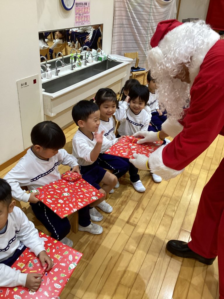 お待ちかね、サンタさんからプレゼントを一人ずつ順番にもらいました。