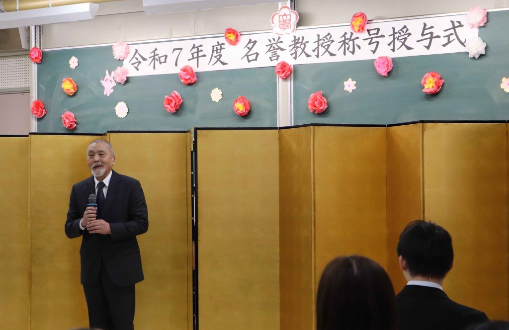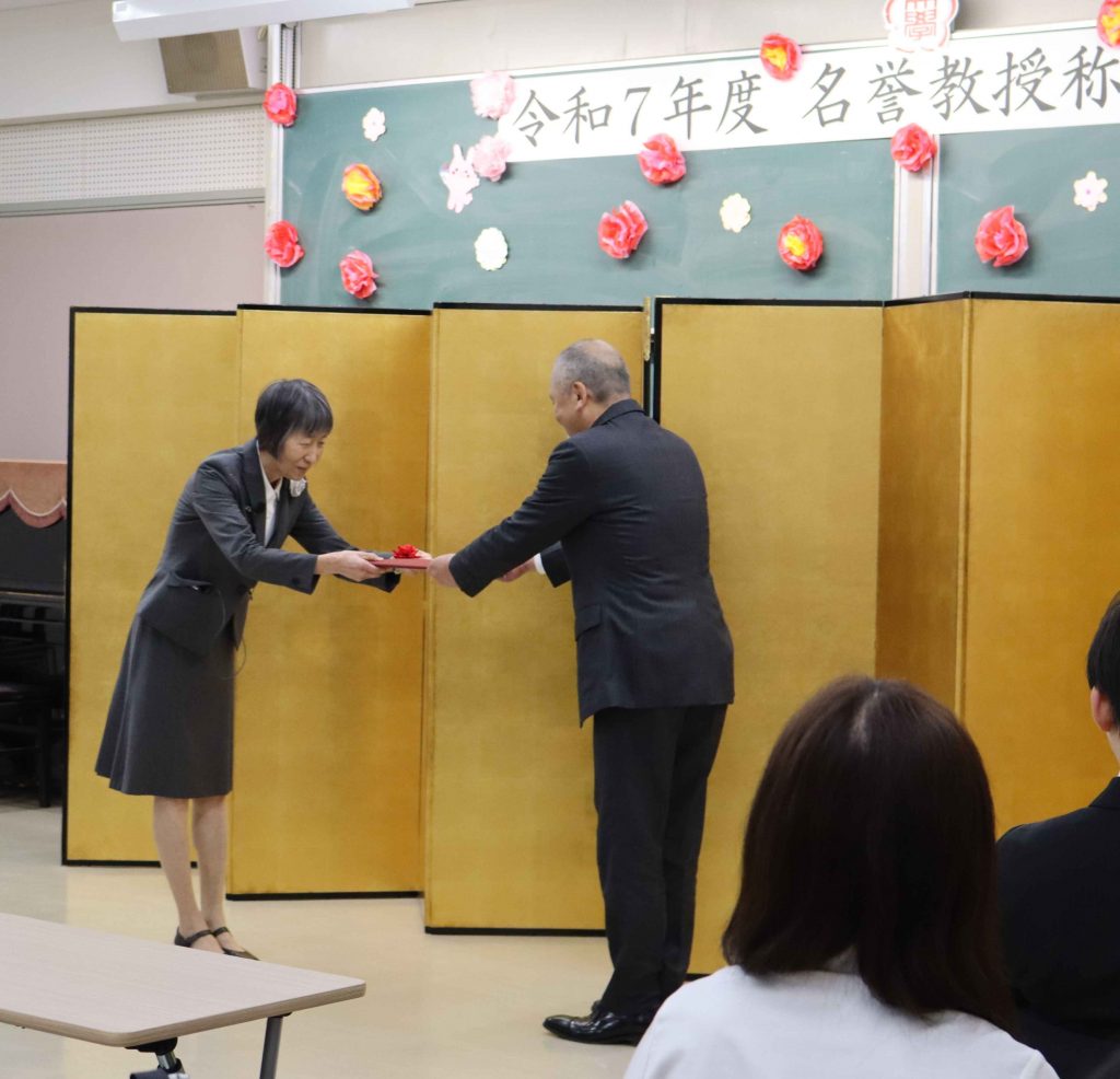 令和7年12月5日(金)に本学豊岡キャンパスにて、岩田 健一郎名誉教授の称号授与式を執り行いました。
