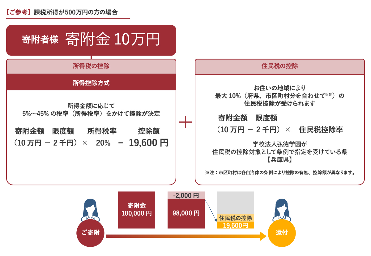 - 寄附金控除の対象:2,000円を超える寄附金は、地方自治体や特定の団体に寄附した場合、個人住民税(県民税:兵庫県、市民税:姫路市・豊岡市)から控除を受けることができます。