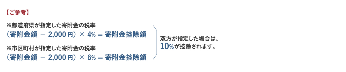 - 控除額の計算:寄附金額から2,000円を引いた額の10%が控除となり、所得税の適用税率に応じて計算されます。
